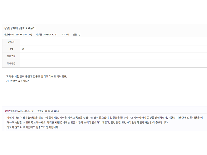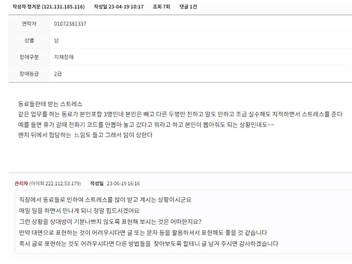 - 장애정도와 구직 욕구 파악 후 적합 직무 알선